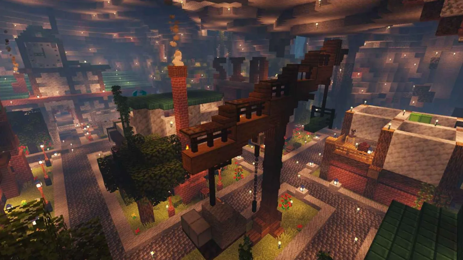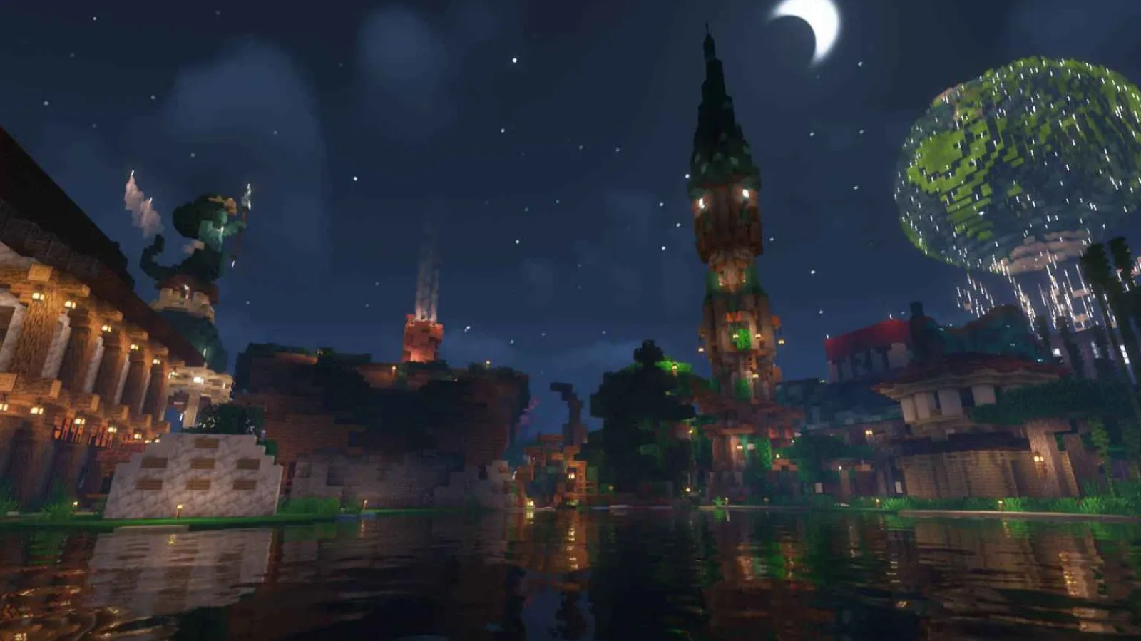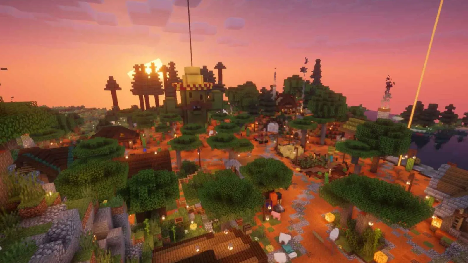 Trading zone is bustling: trade resources for diamonds in shops. Cities, clans, thematic alliances — organize as you like. There's a creative world for testing redstone and mega-builds, doesn't interfere with survival.