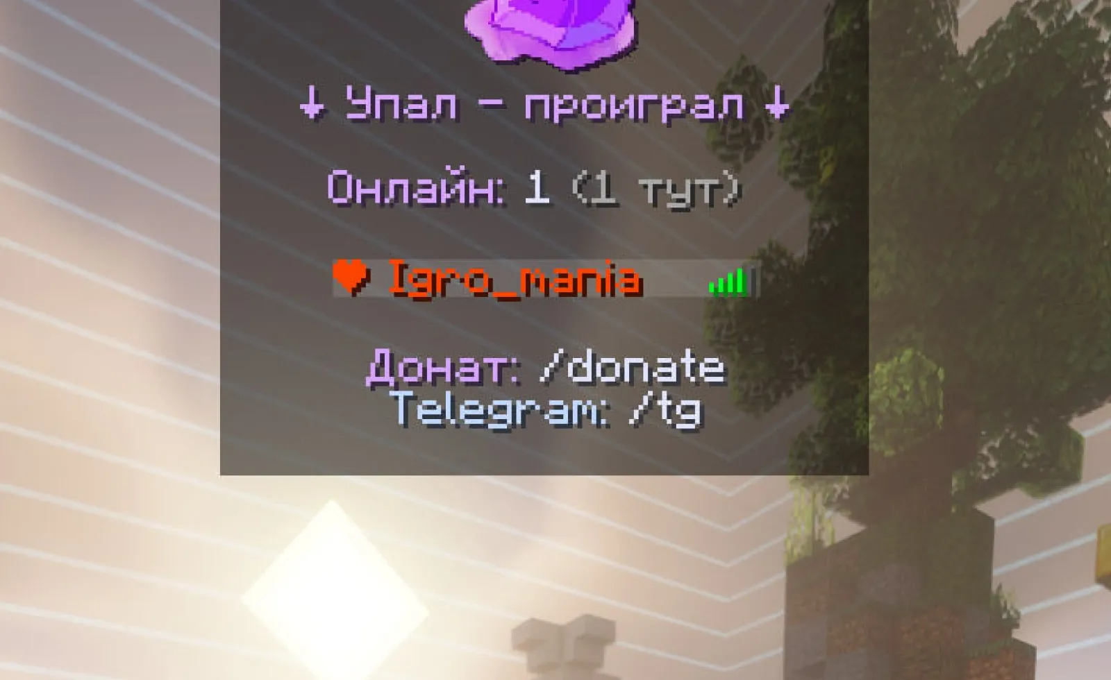A young Minecraft server with a soulful atmosphere. Here, a tight-knit community where everyone will find their mode. Already spinning 6 directions — from calm survival to hardcore PvP.