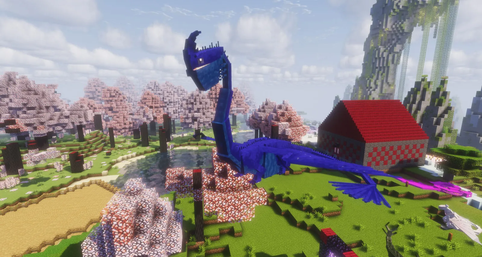 Dragons await. Find an egg in the right biome, hatch the baby, raise a warrior. Your dragon is a loyal companion in flights and raids. In short: no dragon, no way.